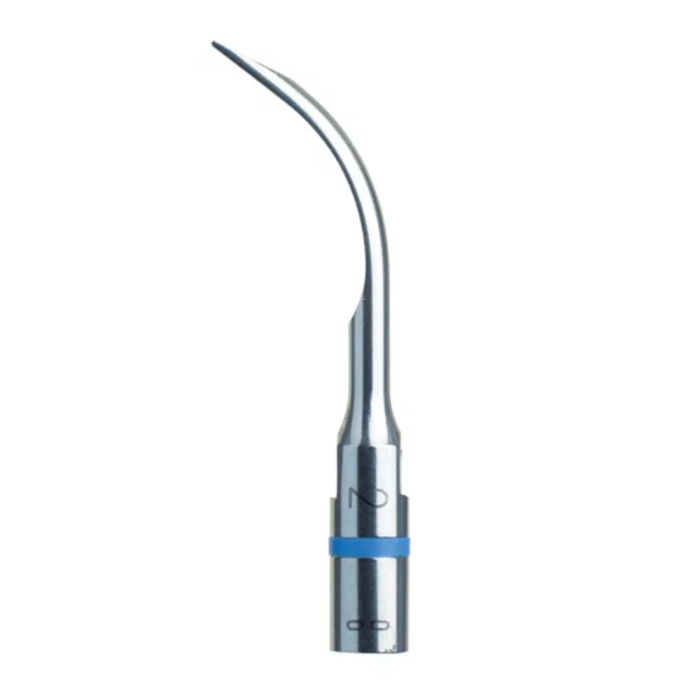 The slightly curved design of the Scaler Tip No. 2 allows for easy access to hard-to-reach areas, such as between teeth and beneath the gumline, ensuring a deep clean in periodontal pockets.