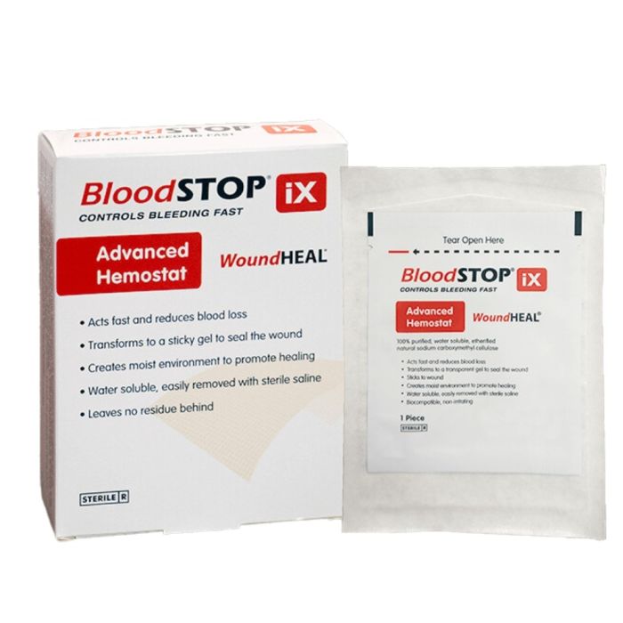 When I folded the BloodSTOP® iX pad and placed it in the extraction site, the blood stopped oozing almost immediately, allowing me to continue working on other sites in the patient’s mouth. It has an unsurpassed ability to absorb bleeding on one or multiple extraction sites. This is especially useful in patients who are unable to bite down on gauze to control bleeding. I was able to place BloodSTOP® iX into the tooth socket, and it stayed in without even placing sutures. Hemostasis was achieved with BloodSTOP® within just a few seconds after the tooth was surgically removed from the mouth. It is easily cut or folded, so it conforms to irregular wound areas with simple placement. BloodSTOP® iX is an excellent topical hemostatic agent, which can be used in extraction sites, biopsy sites, when performing periodontal surgery, and where dental trauma exists. Upon contact with moisture, the BloodSTOP® iX pad became a gel, sealing the wound quickly and stopping bleeding effectively. We like using BloodSTOP® iX because it becomes a thick gel within 15 seconds, filling up the void left after a tooth is removed. The blood is coagulated quickly, even in patients with bleeding challenges. We have found the frequency of alveolar osteitis (dry socket) complications to be less with BloodSTOP® iX, saving chair time, the need for post-op visits, and overall costs in oral surgical procedures. I love how flexible and malleable the BloodSTOP® iX is, it can be used for a wide variety of intraoral and extraoral uses. I use it for lip or mucosa lacerations, after an extraction to control bleeding, and after periodontal surgery to eliminate oozing. It is ready to use right when taken from the package, or I can cut it to just about any size for the specific area I need it. I really like how thin it is, so I can easily visualise what I’m working on when the site is bleeding significantly. It is lightweight and has a large surface area, so when it turns into a gel-like substance, it absorbs blood very effectively.