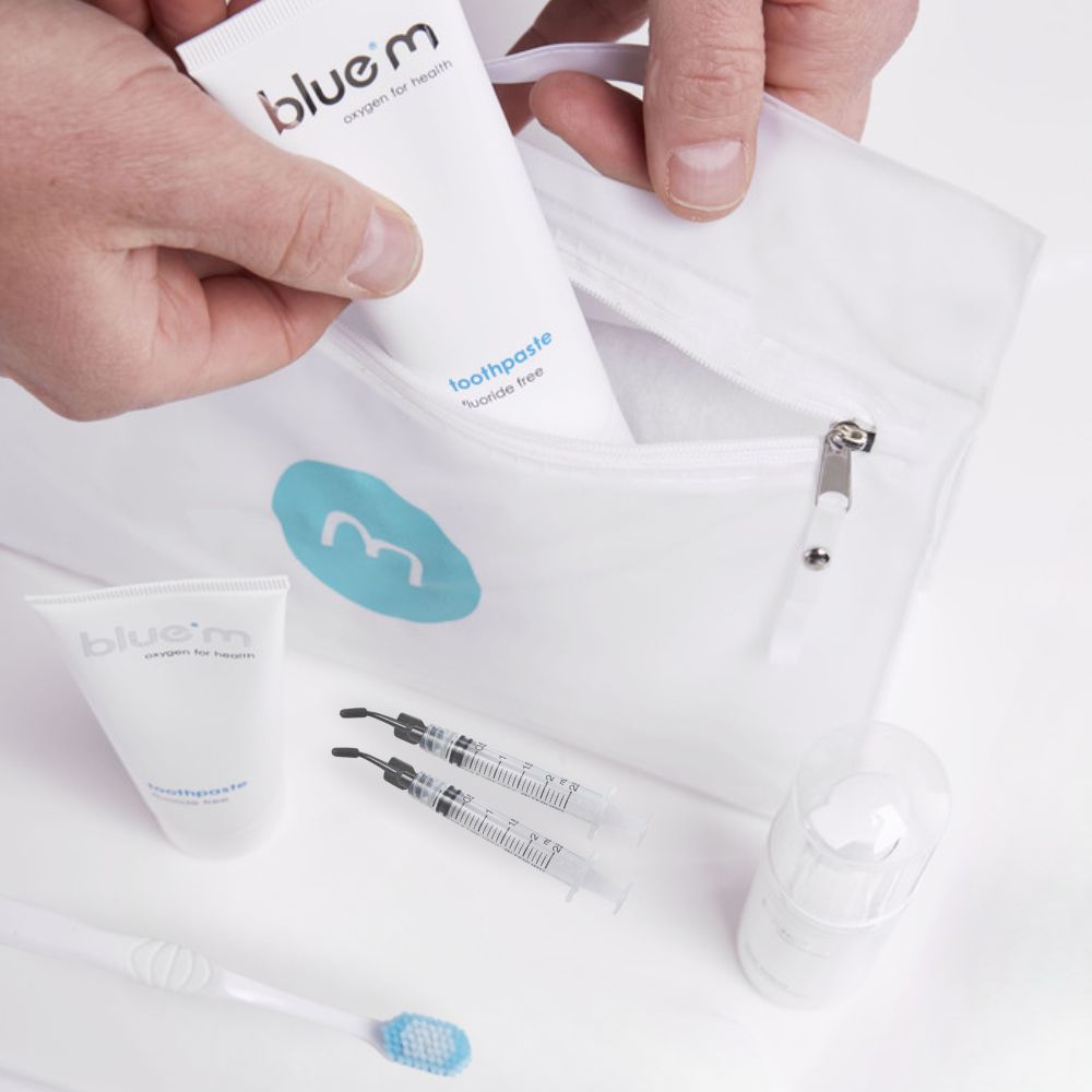 With a focus on innovation and quality, blue®m harnesses the natural antibacterial properties of oxygen to promote a healthier mouth, helping to prevent common issues such as gum disease, peri-implantitis, and bad breath.