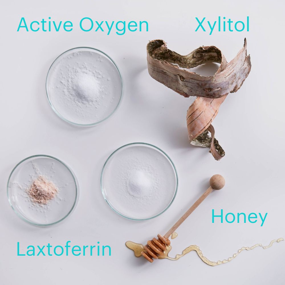 To further support healing and hygiene, blue®m incorporates active oxygen technology using naturally derived ingredients like sodium perborate and glucose oxidase, offering a gentle yet effective solution for everyday oral and wound care.