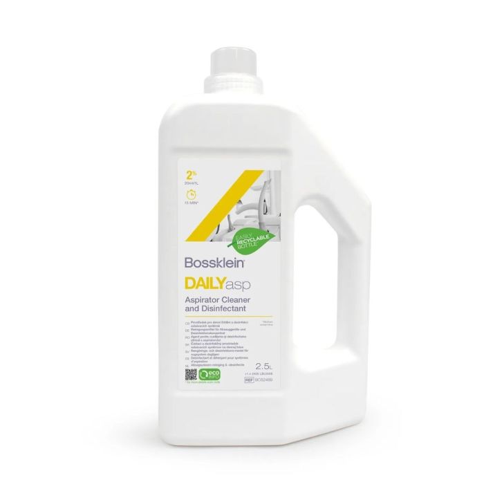 Bossklein DAILYasp is specially formulated for daily cleaning and disinfection of dental aspirator suction systems, helping to remove contamination and microorganisms while reducing the risk of disease transmission.