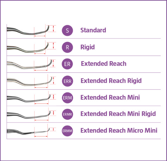 Whether you need the standard design or extended reach, mini, rigid, or micro mini variations, the Amazing Gracey range meets every clinical need: