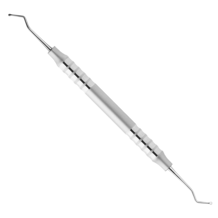 The rounded DISCOID end of the workpiece is used for removing excess filling material.