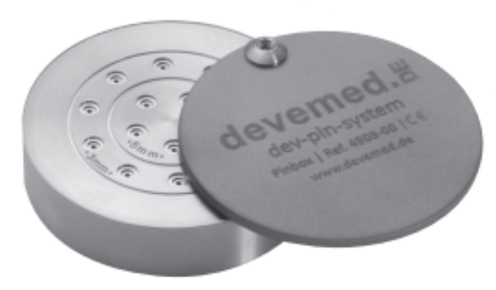 The Devemed Titanium Endpiece applicator allows for the convenient insertion of titanium pins in the jaw. With its dental attachment, the Endpiece is suitable for Dev-Os manual turning handle.