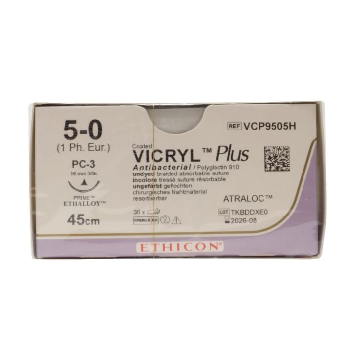 Ideal for procedures where infection prevention is a priority, Vicryl Plus 5/0 Sutures offer reliable wound support, minimal tissue reaction, and added antimicrobial protection.