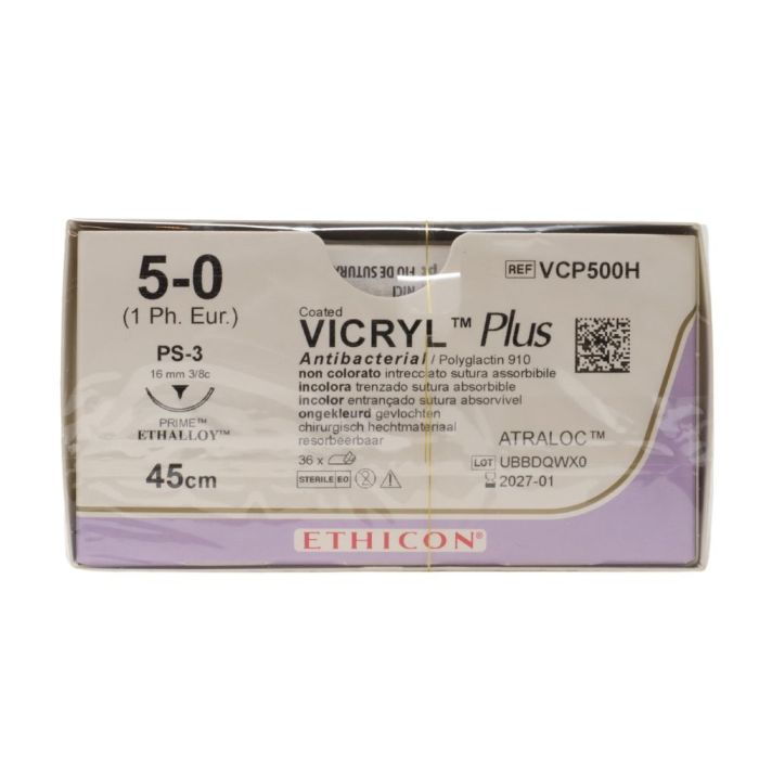 Ideal for procedures where infection prevention is a priority, Vicryl Plus 5/0 Sutures offer reliable wound support, minimal tissue reaction, and added antimicrobial protection.