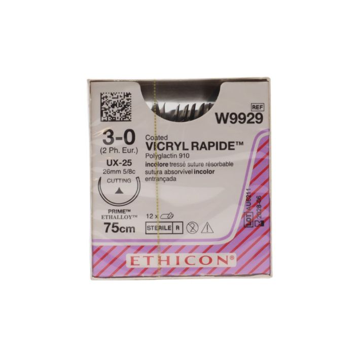 Ethicon Vicryl Rapide Sutures are high-quality, synthetic, braided, undyed, absorbable sutures made from Polyglactin 910. Specially designed for procedures where rapid absorption is advantageous, these sutures provide reliable tissue approximation while minimising the need for suture removal.