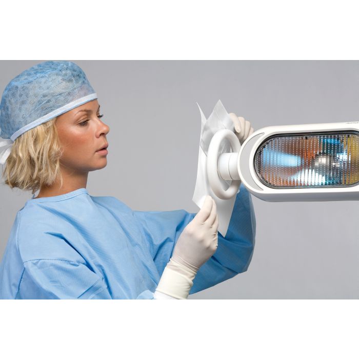 Clear, Adhesive Film: Light Handle or Physio Cover. Useful for covering all control panels, keyboards, handles and operation surfaces that can be touched during surgical procedures, helping prevent any cross-contamination.