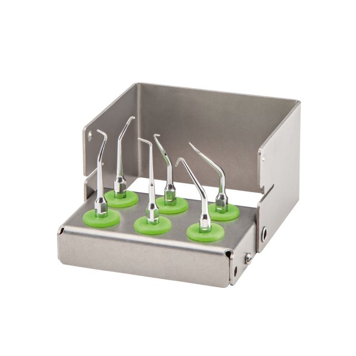 Precision for Retrograde Root-End Preparation- Features 6 diamond-coated ultrasonic tips (R1D-R4LD) with straight, curved, and angled designs for optimal access in all regions of the mouth. Enables accurate and conversative shaping of root-end cavities with reduced risk of overpreparation.